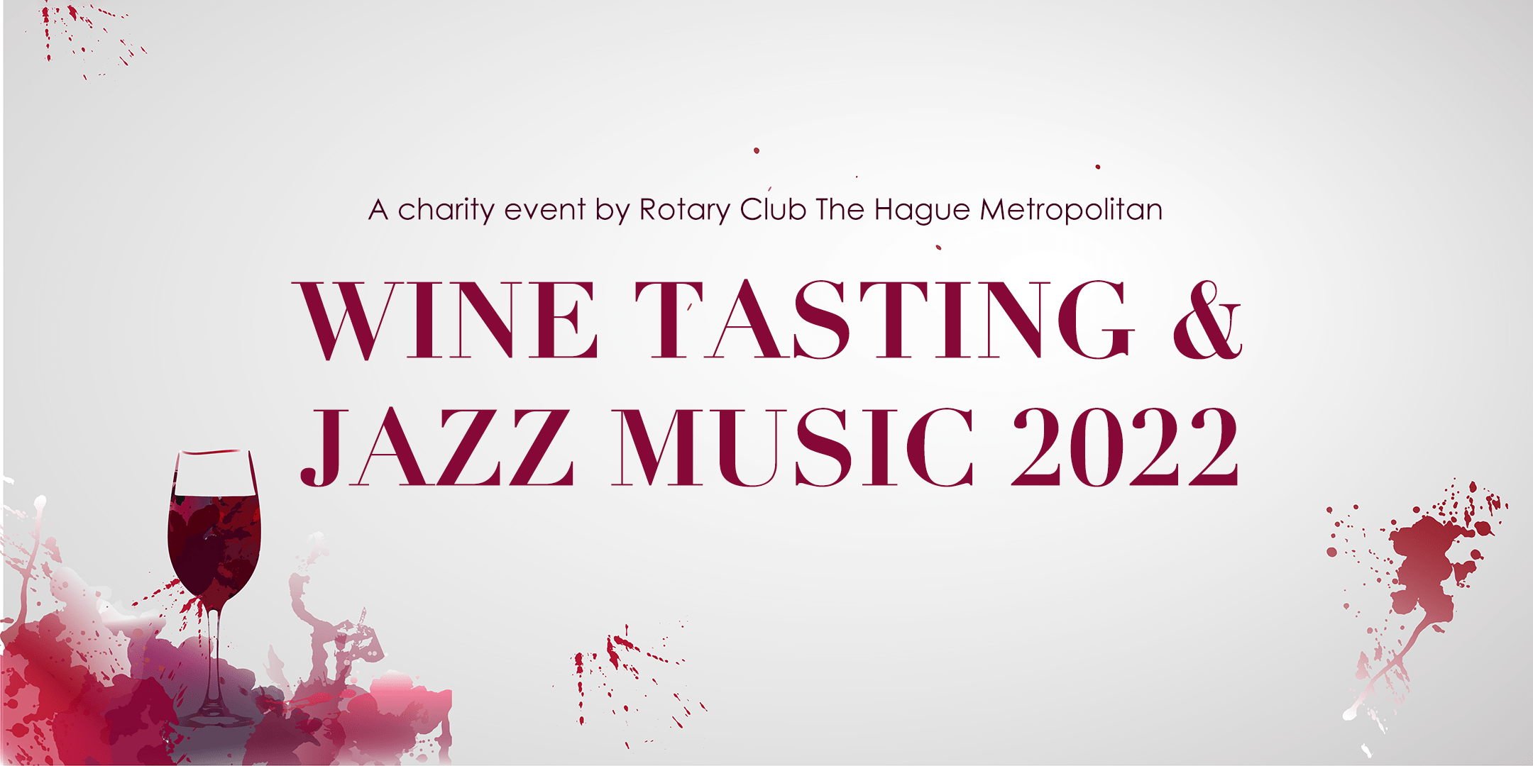 This is an invitation to a wine tasting charity event of The Rotary Club The Hague Metropolitan (RCTHM) on Sunday, May 15, 2022 from 14:00 to 18:00 at Leonardo Royal Hotel Den Haag Promenade, van Stolkweg 1, The Hague.